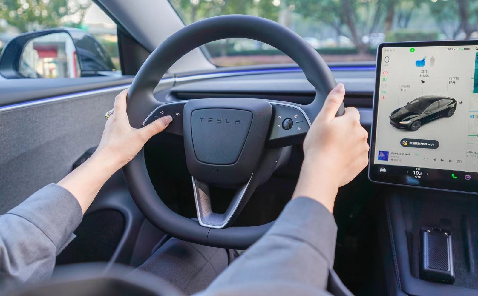 進(jìn)入車內(nèi),升級同樣非常明顯,整個車內(nèi)營造出了素雅、整潔的時尚科技感,并且在方向盤區(qū)域是特斯拉Model 3煥新版最大的變化,由此可以看到新車取消了所有的撥桿,包括雨刷、轉(zhuǎn)向燈、語音、攝像頭、輔助駕駛等功能均可通過方向盤上的按鍵和滾輪實現(xiàn)操作。